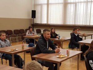 Turniej składał się z dwóch etapów.Pierwsz odbył się etap pisemny – test. Do drugiej tury – ustnej zakwalifikował się nasz uczeń Jakub Sienkiel z klasy 3S.