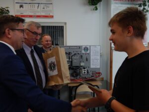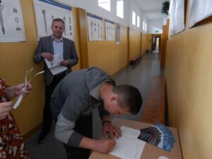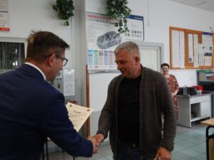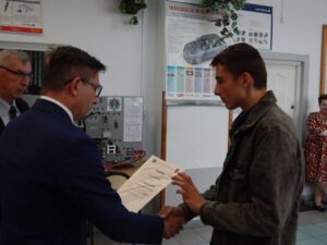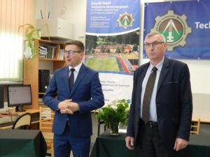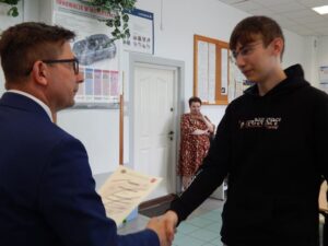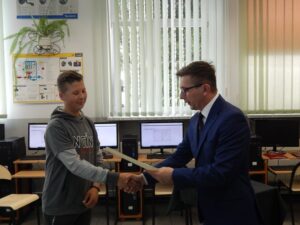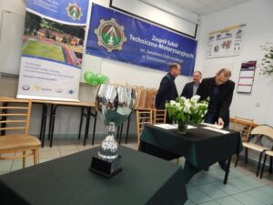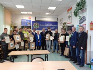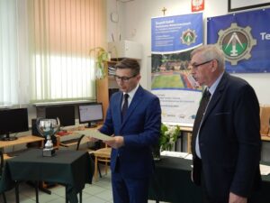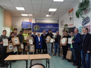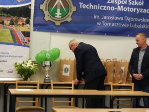 27. 05. 2022 r. uczniowie szkół podstawowych wzięli udział w V edycji Turnieju Techniczno-Motoryzacyjnego zorganizowanego w Zespole Szkół Techniczno-Motoryzacyjnych im. Jarosława Dąbrowskiego w Tomaszowie Lubelskim pod patronatem Starosty Tomaszowskiego. Po przeprowadzonym sprawdzianie testowym i etapie praktycznym tytuł Technicznej Szkoły Roku 2022 zdobyła Szkoła Podstawowa z Jarczowa. Puchar zwycięskiej drużynie wręczył Pan Andrzej Bulicz – Dyrektor Wydziału Oświaty, Kultury, Kultury Fizycznej i Pan Janusz Joniec – Dyrektor Zespołu Szkół Techniczno-Motoryzacyjnych. Drugie miejsce zajęła Szkoła podstawowa z Tarnawatki, trzecie Szkoła Podstawowa z Bełżca. Indywidualnie pierwsze miejsce zajął Jakub Bednarz – uczeń SP w Jarczowie, drugie miejsce Marcel Ruta – uczeń SP w Jarczowie, trzecie Kacper Woźnica – SP w Tarnawatce. Finaliści otrzymali cenne nagrody ufundowane przez RST Roztocze, Inter Auto Bucior Tomasz i Dyrektora ZSTM. Po wręczeniu nagród Pan Dyrektor podziękowała uczniom i ich opiekunom za przybycie i udział w turnieju, życząc kolejnych sukcesów, a organizatorom za zaangażowanie i przygotowanie zawodów.