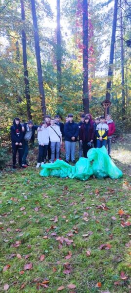 W dniu 7.10.2022r klasa 1a wraz z wychowawcą P. Kamilem Margolem i opiekunem P. Arturem Rachańskim udała się do Nadleśnictwa w Tomaszowie Lubelskim w celu sprzątania lasu. Młodzież była zaskoczona ilością śmieci, które znajduje się w lesie. W niedługim czasie udało im się zebrać kilka pełnych worków śmieci. Akcja miała na celu uświadomienie uczniów, jak dużym problemem jest zaśmiecanie lasu i przyrody. Podczas akcji towarzyszyła nam kamera TVP3 Lublin. Krótki reportaż będzie do obejrzenia w programie ” Żyj w przyrodzie” w środę 12.10. lub 19.10 o godzinie 20:00.