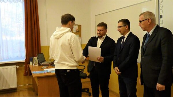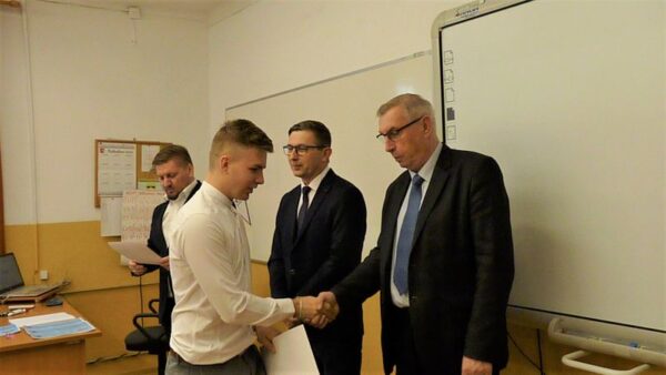 Uczniowie klas III i IV technikum w zawodzie: technik pojazdów samochodowych, technik logistyk oraz klas II i III szkoły branżowej I stopnia w zawodzie: kierowca mechanik, mechanik pojazdów samochodowych odebrali z rąk Pana Mateusza Żymiełko – Dyrektora Operacyjnego Grupy Oscar, Pana Andrzeja Bulicza – Dyrektora Wydziału Oświaty, Kultury, Kultury Fizycznej Starostwa Powiatowego w Tomaszowie Lubelskim, Pana Janusza Jońca Dyrektora Zespołu Szkół Techniczno-Motoryzacyjnych i Pani Justyny Adamowskiej – Grupa Oscar stypendia motywacyjne przyznane w Programie Stypendialnym „Oscar – Najlepsi zawsze z nami” prowadzonym przez Fundację Społeczno – Gospodarczą Oscar z siedzibą w Tomaszowie Lubelskim.