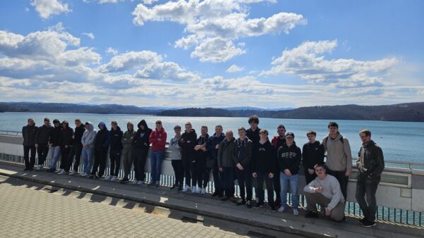 W dniach 3-4.04.2025 uczniowie technikum elektrycznego z klasy trzeciej i czwartej ZSTM uczestniczyli w dwudniowej wycieczce dydaktycznej. W czwartek zwiedzili obiekt hotelowy w Arłamowie i elektrociepłownię z technologią tri generacji, to jeden z najnowocześniejszych i największych tego typu obiektów w Polsce, który wykorzystuje jako opał biomasę z drewna. Instalacja produkuje energię elektryczną, ciepło oraz wodę lodową do systemów klimatyzacji, emitując jedynie parę wodną i dwutlenek węgla. Kolejnym obiektem była elektrownia w Solinie. Uczestnicy obejrzeli tamę z korony zapory, pracownicy zapoznali z historią i pokazali zaporę od wewnątrz, przejazd wagonikami kolejki linowej pozwolił zobaczyć z góry zalew i zaporę. Następnego dnia wczesnym rankiem wyruszamy do Rzeszowa. Pracownicy Elektromontażu Rzeszów S. A. – jednej z największych firm produkcyjno-montażowych w Polsce – przedstawili historię i produkty firmy. Po zakładzie produkującym rozdzielnice elektryczne nN i SN, tablice elektryczne i szafy zasilająco-sterujące oraz elementy konstrukcyjne rozdzielnic oprowadzał absolwent technikum elektrycznego naszej szkoły – Pan Waldemar Bąk – aktualnie V-ce Prezes Zarządu ds. Technicznych. Po zakończonej wizycie w Elektromontażu – dzięki uprzejmości PSE Radom – pojechaliśmy obejrzeć Stację Elektroenergetyczną 220/110kV Chmielów. Pracownicy zapoznali z procedurami pracy w obiekcie, zaprezentowali urządzenia i wyposażenie obiektu.